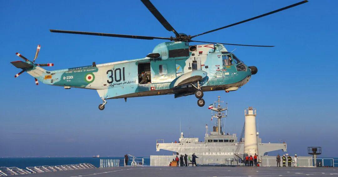 伊朗海军的“海王”直升机在“莫克兰”号上起降